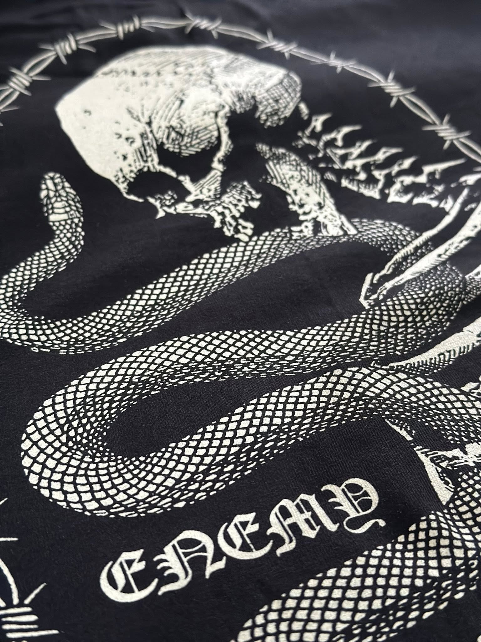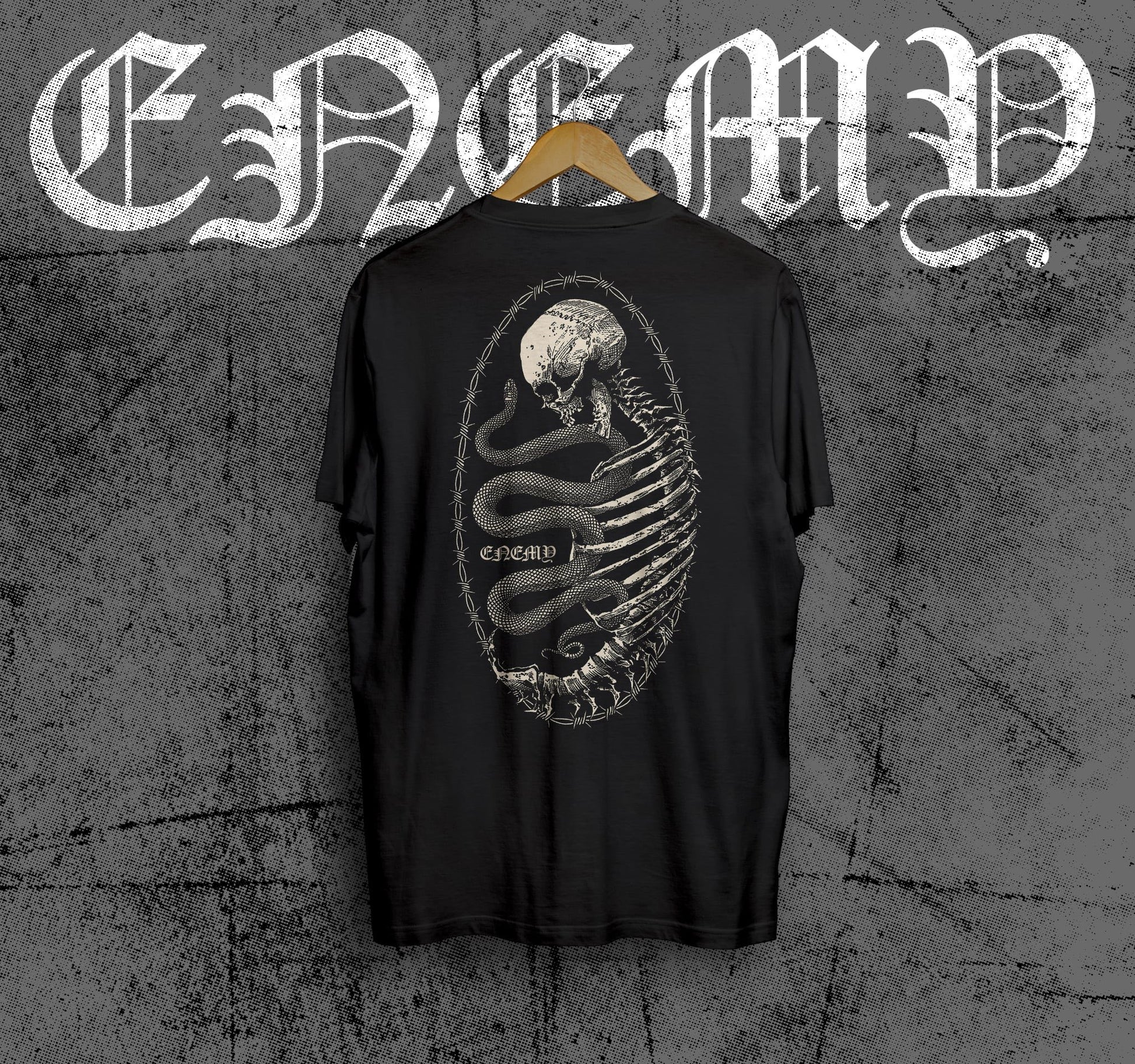 Venom in the bones. The Serpent Coil Tee strikes with a brutal graphic of a human skeleton wrapped tight by a deadly serpent—from ribs to skull, pure power, danger, and defiance.